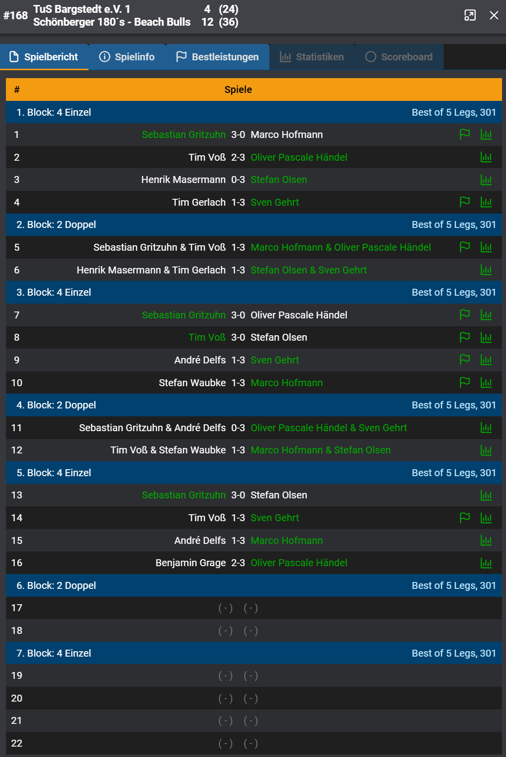 Bestimmt gab es noch so das eine oder andere weitere Turnierhighlight aber da dem Autor dieser Zeilen nichts weiter bekannt ist und das Wochenende auch schon wieder rum ist wünsche ich einfach allen viel Erfolg bei den vorweihnachtlichen Turnieren der nächsten Zeit!